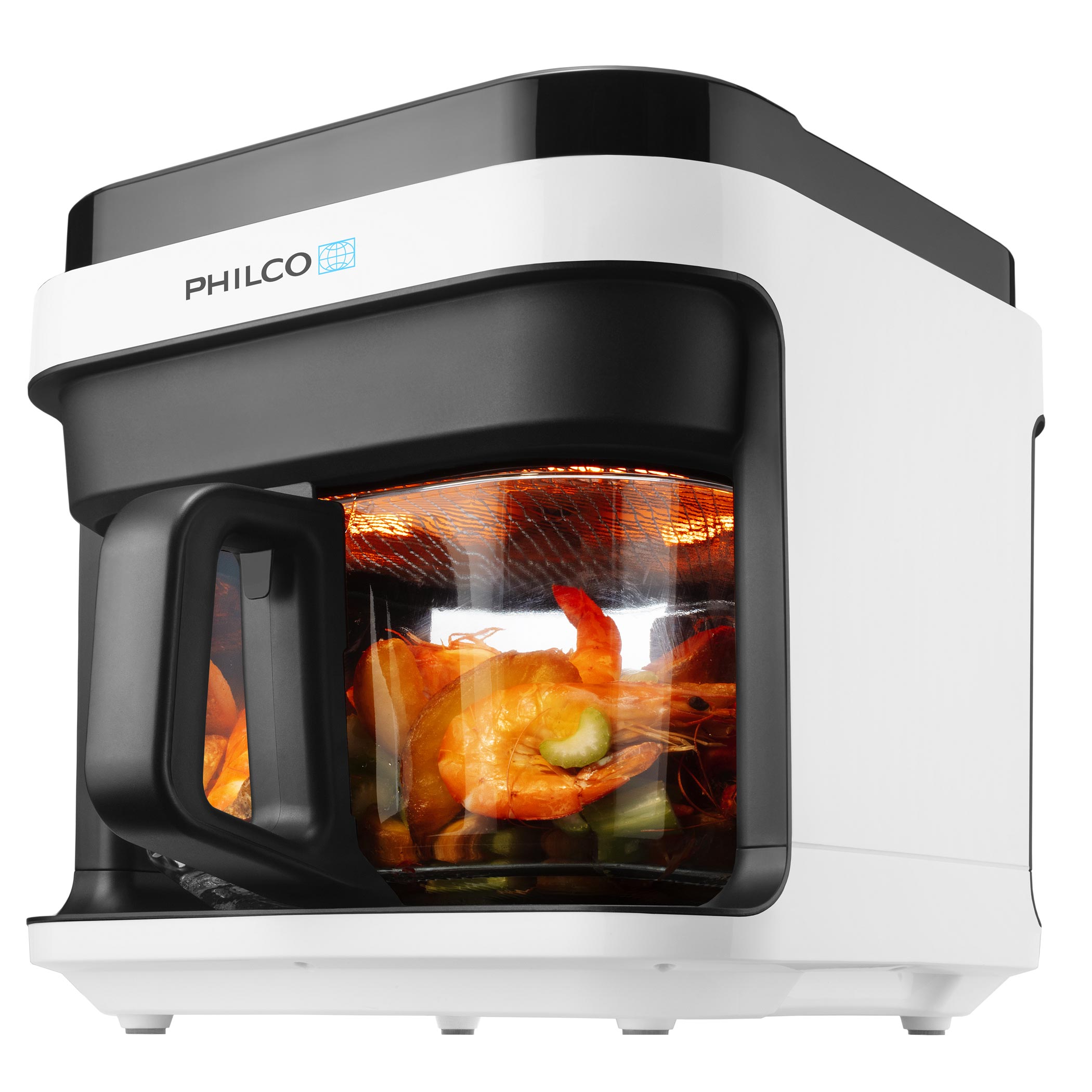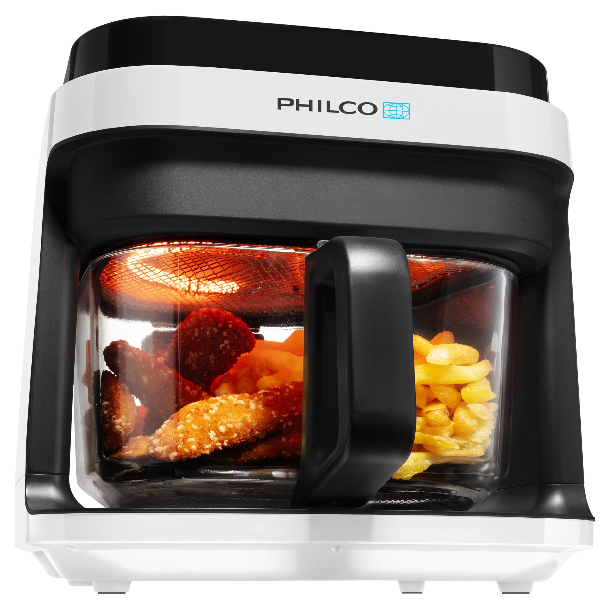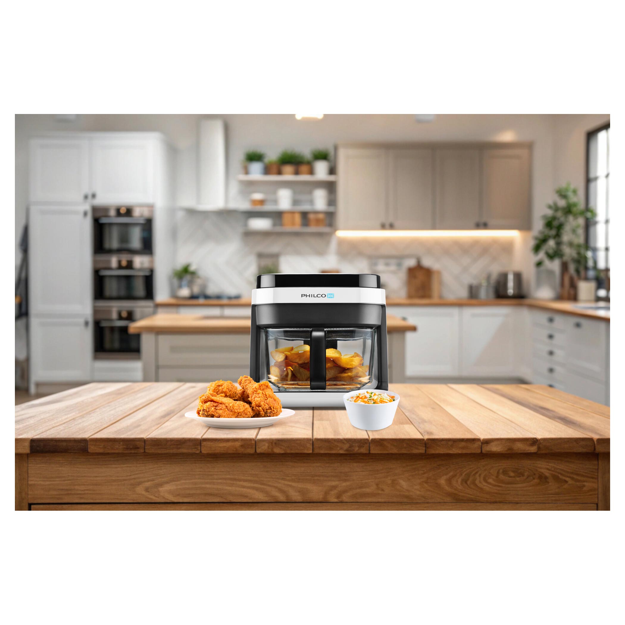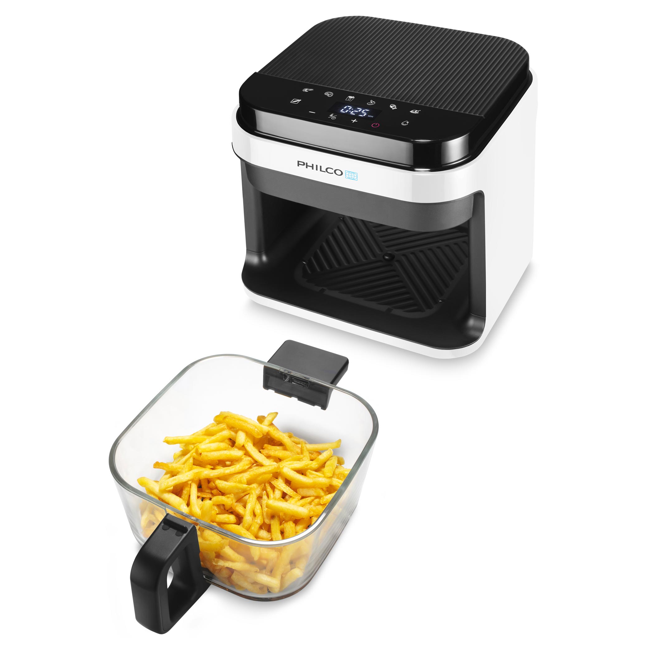Beztłuszczowa frytkownica Philco PHAF 2100 W wyposażona jest w szklany pojemnik do smażenia – żadnego plastiku, tylko wysokiej jakości szkło, które pozwala obserwować proces przygotowywania ulubionych potraw. Dzięki technologii gorącego powietrza smażenie jest zdrowsze i znacząco oszczędza olej!