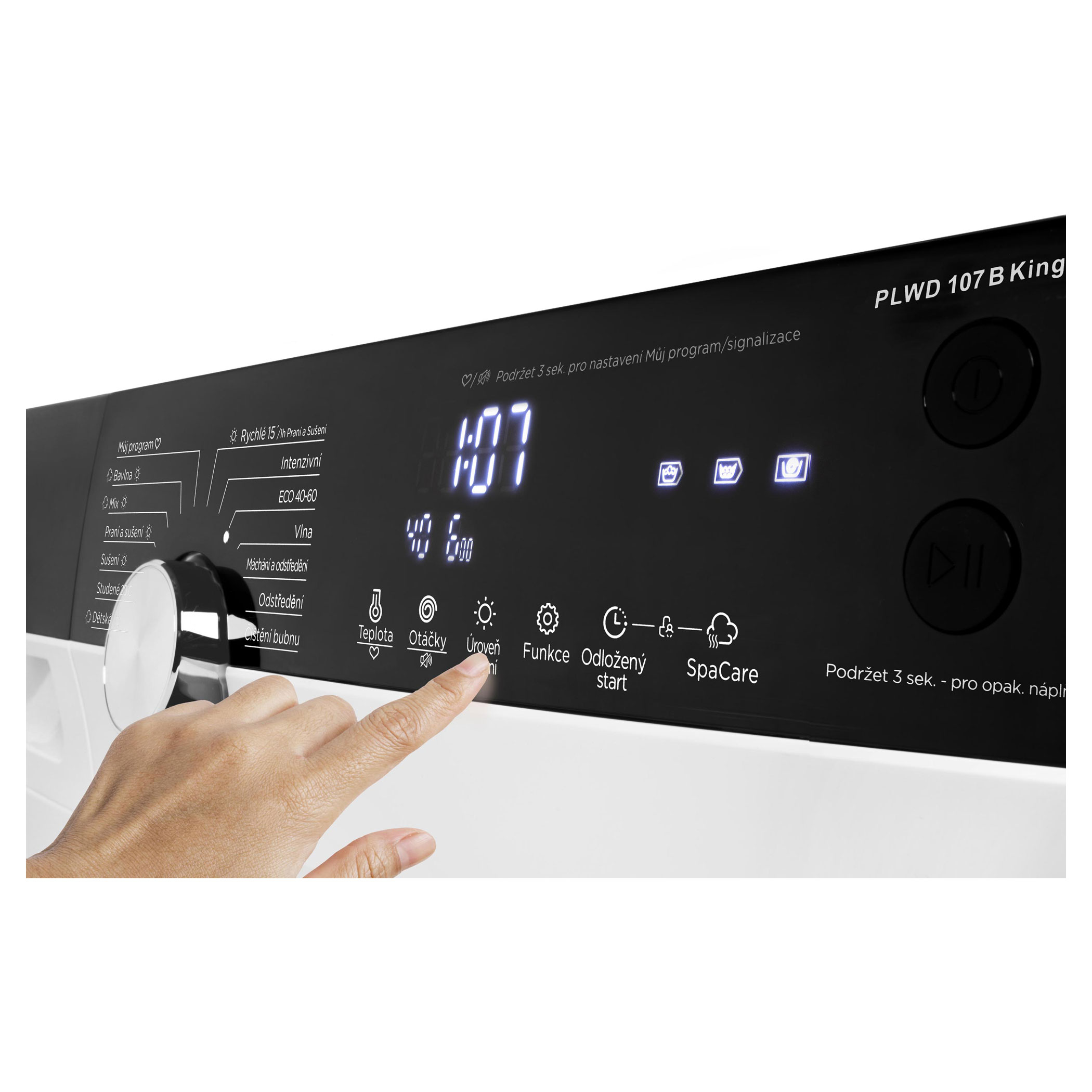 panel sterujący w języku czeskim, blokadę rodzicielską, opóźniony start prania oraz sygnalizację zakończenia prania.
