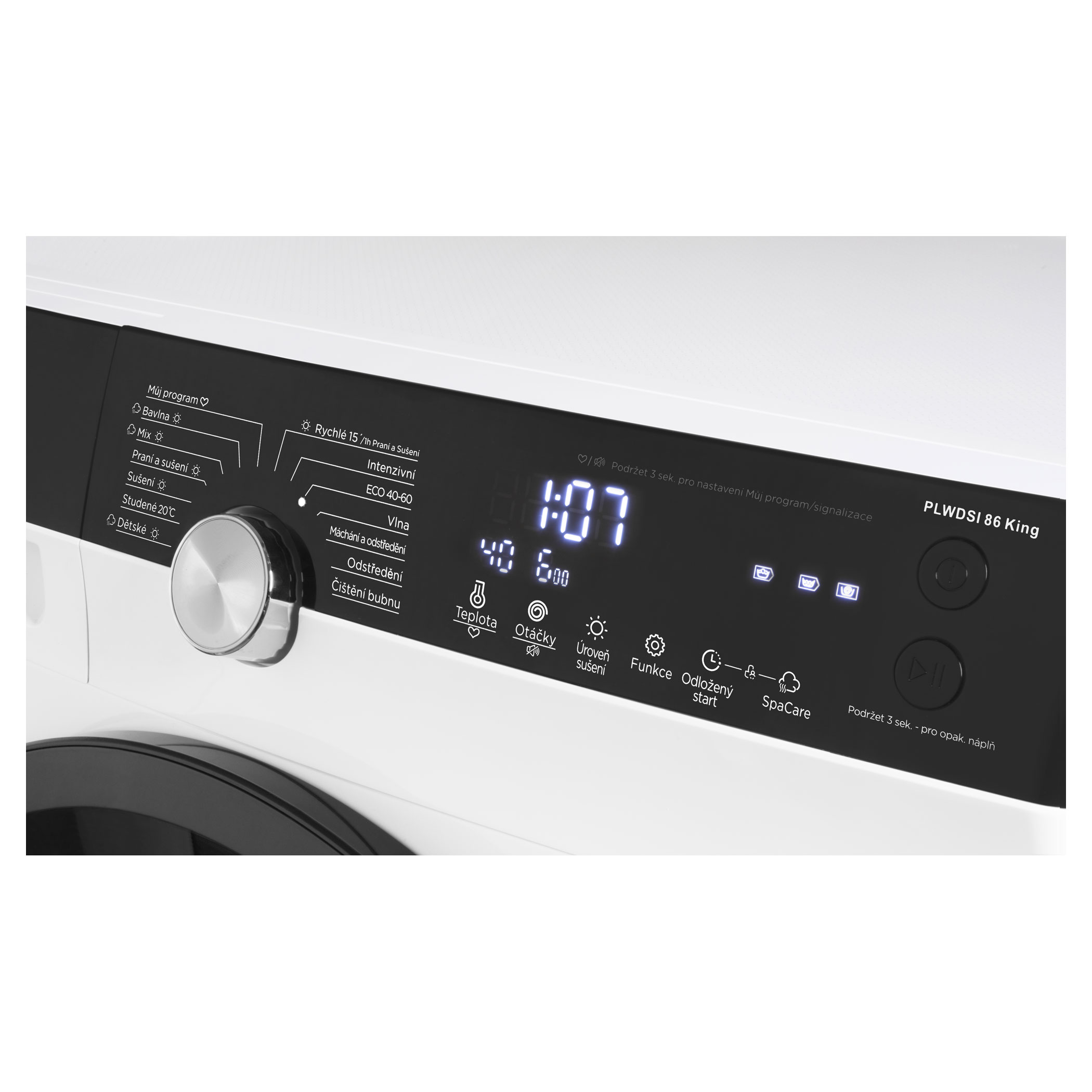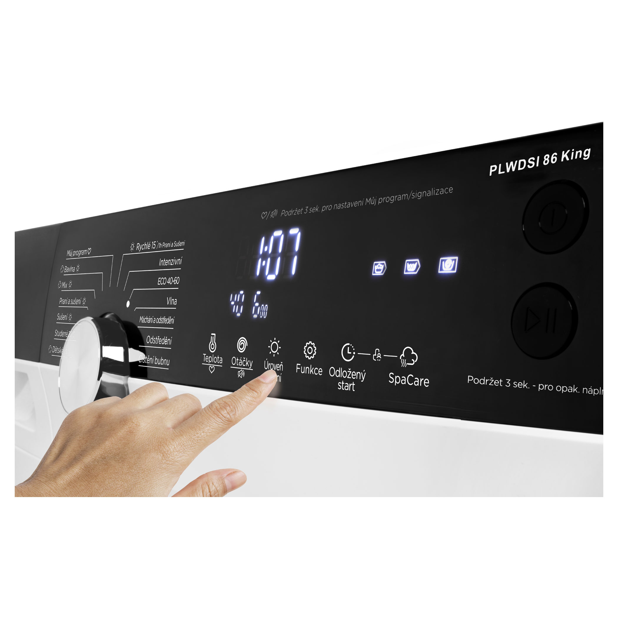 panel sterujący w języku czeskim, blokadę rodzicielską, opóźniony start prania oraz sygnalizację zakończenia prania programu.