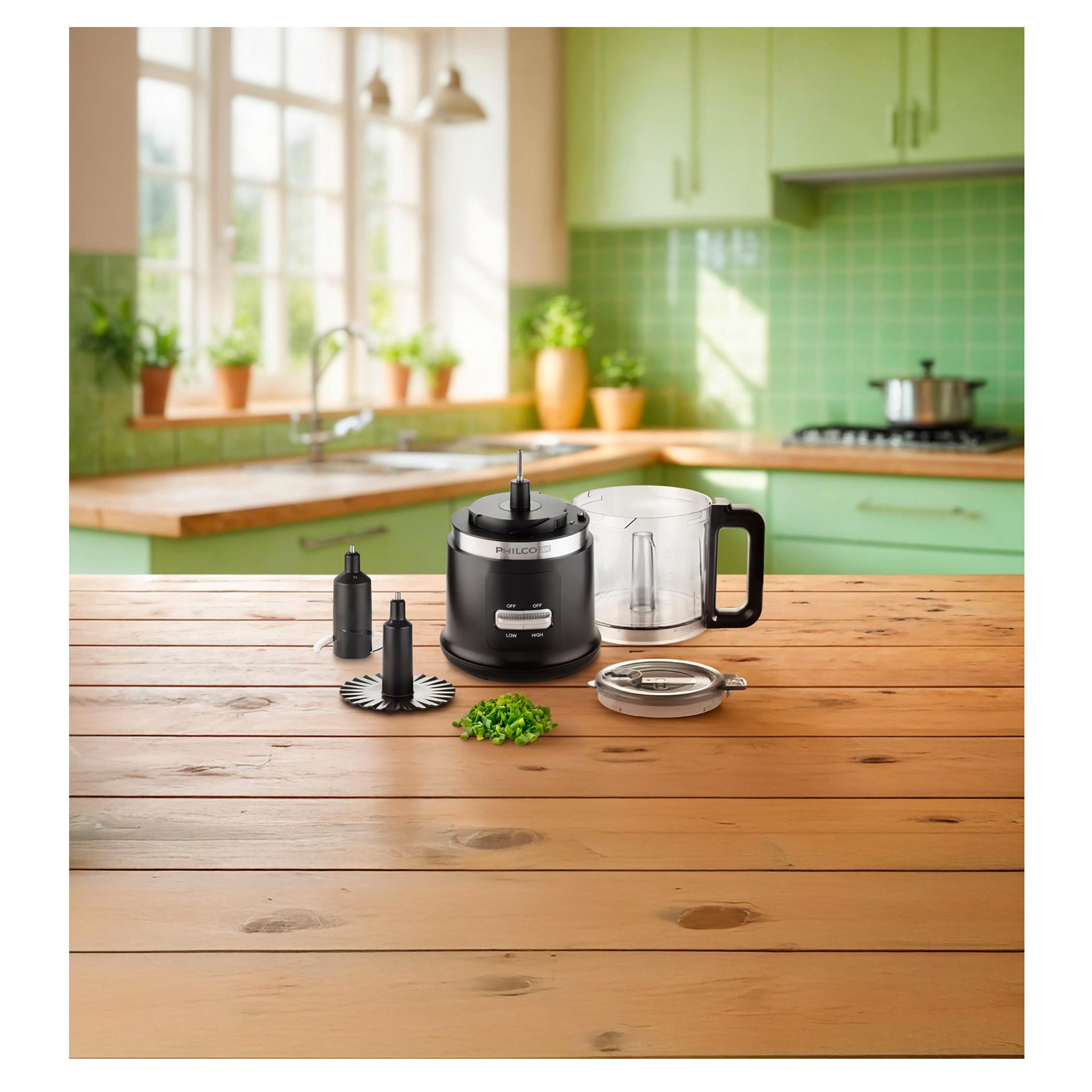Nowoczesny siekacz do żywności Philco PHHB 3210 z kolekcji Slice & Grind poradzi sobie ze wszystkim - od ziół, przez warzywa, aż po domowy majonez. Mocny silnik, dwie prędkości oraz podwójne, czteroramienne ostrze ze stali nierdzewnej sprawiają, że bez wysiłku posieka warzywa, orzechy, zioła, a nawet skruszy lód. Dzięki końcówce do ubijania przygotujesz również dipy oraz kremowe sosy. Dzięki przemyślanej konstrukcji jest niezawodny, kompaktowy i bezpieczny dla każdego.