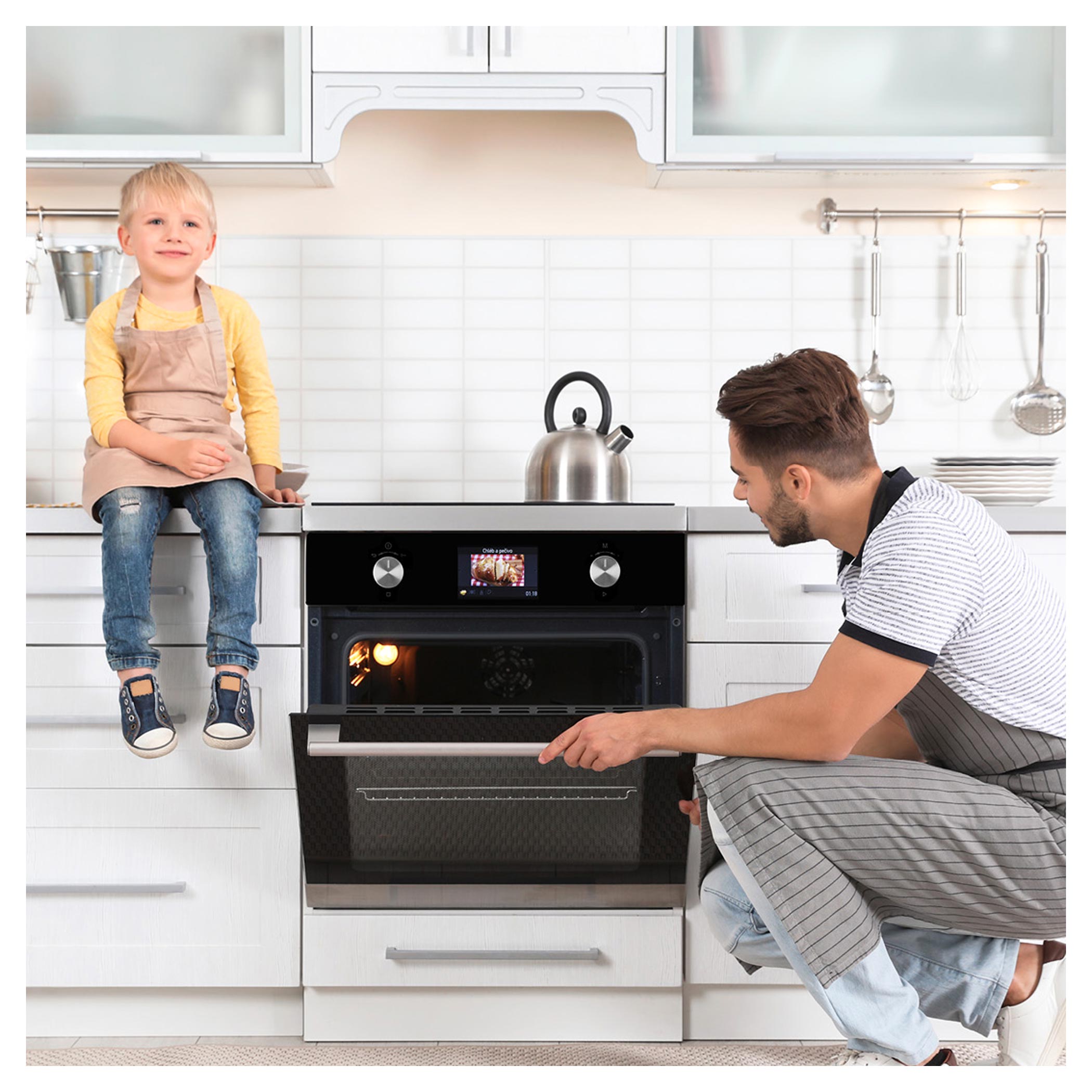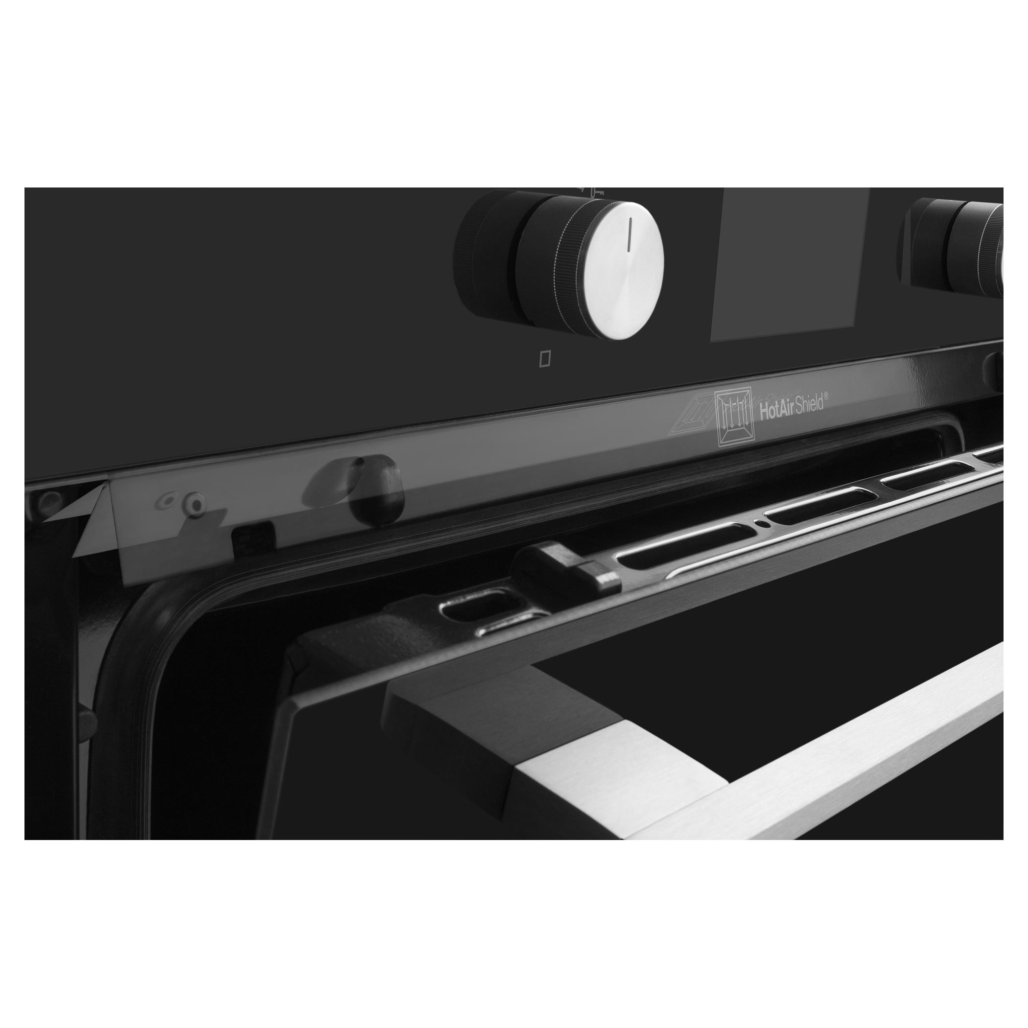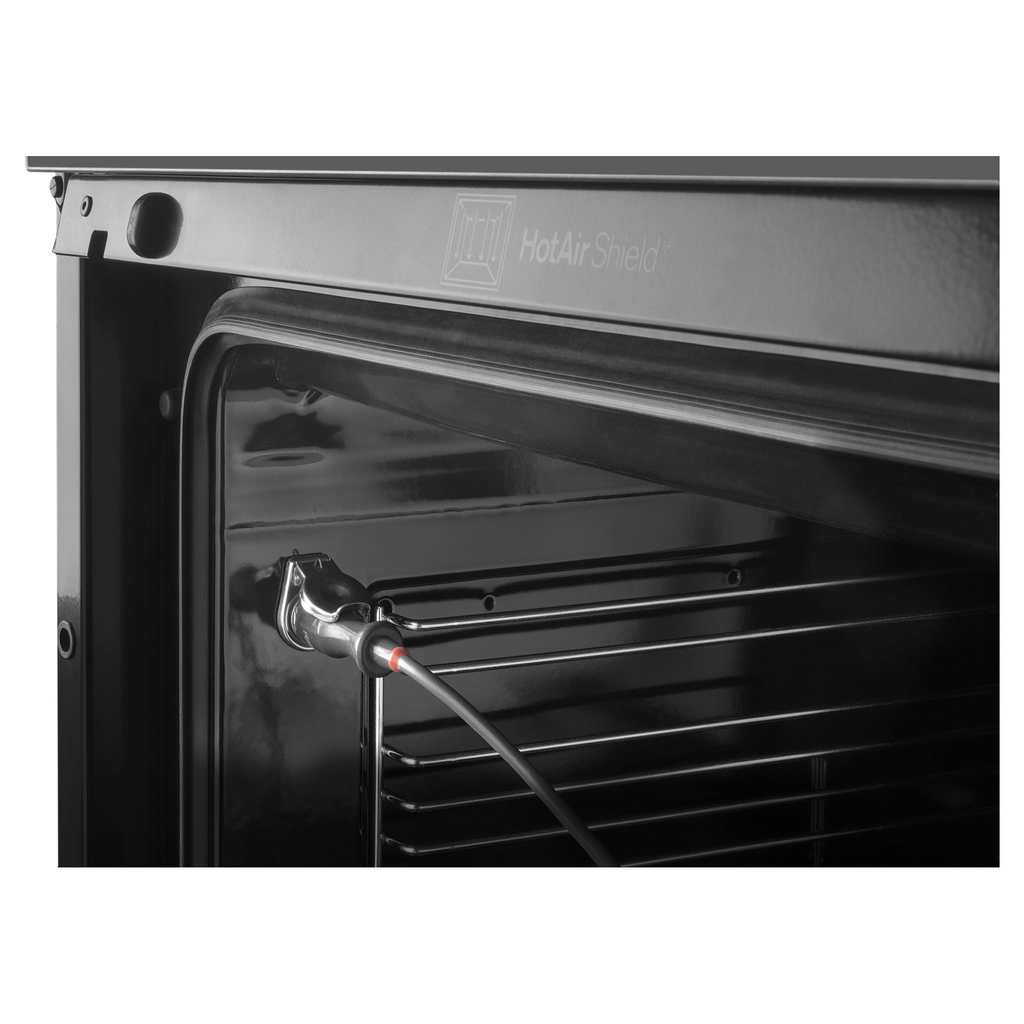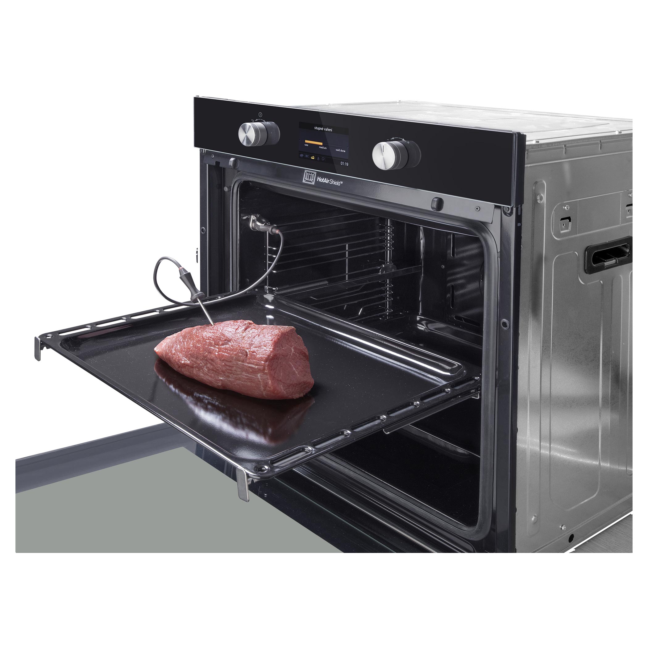 HotAirShield. Jest to automatycznie składany drążek, który zapobiega spontanicznemu wydostawaniu się gorącego powietrza z piekarnika bez wsparcia wentylatora i pomaga utrzymać stałą temperaturę wewnątrz piekarnika nawet przy otwartych drzwiczkach. Aby dokładnie mierzyć wewnętrzną temperaturę mięsa, model