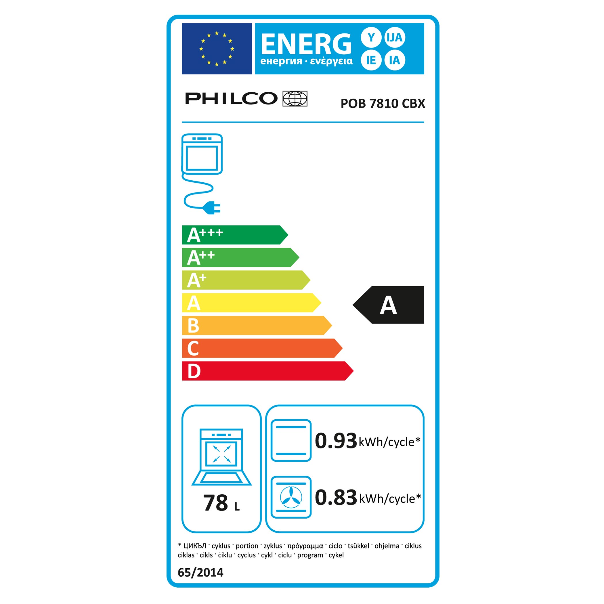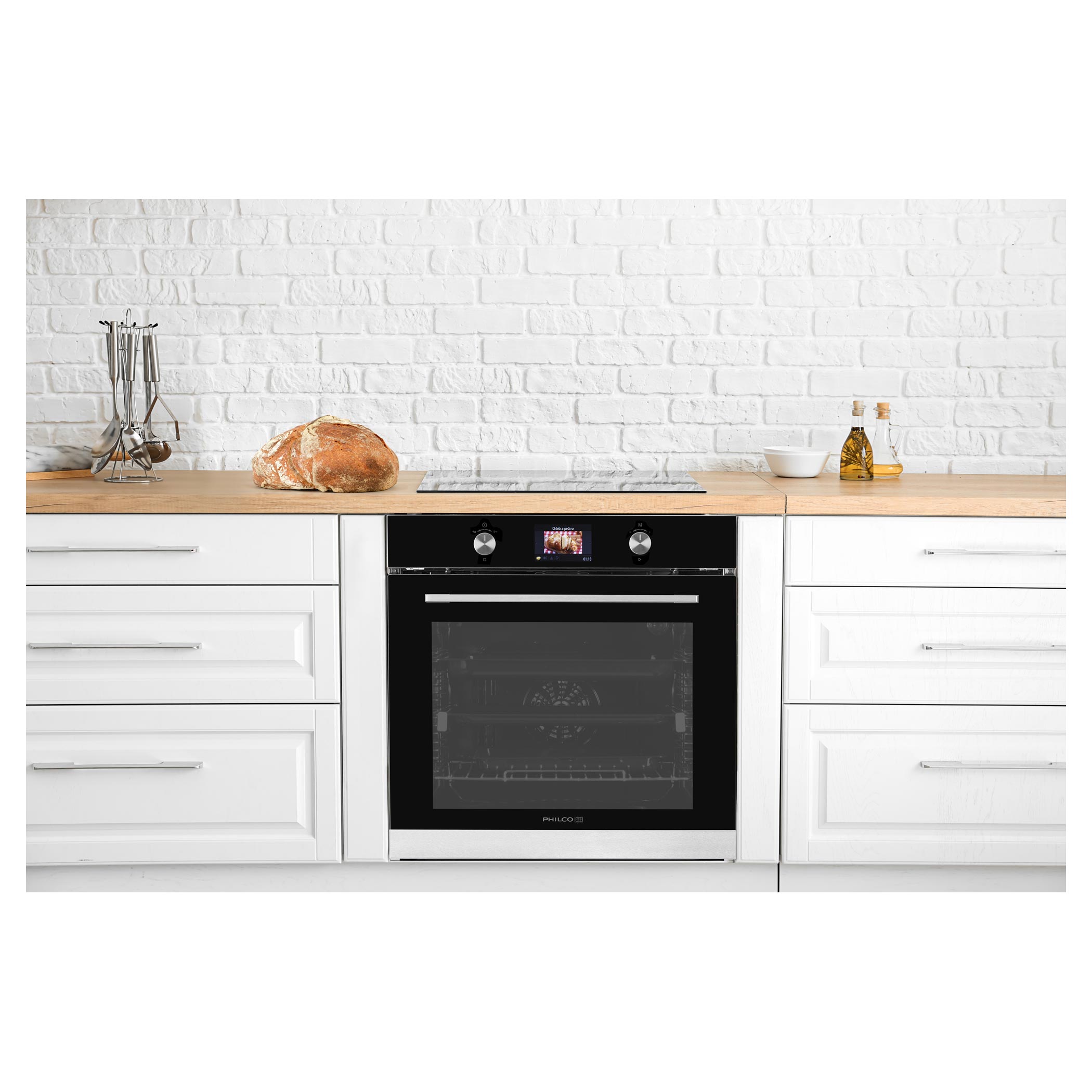 Wbudowany wielofunkcyjny piekarnik z gorącym powietrzem Philco POB 7810 CBX o dużej pojemności do 78 litrów może upiec naprawdę duży kawałek mięsa na aż