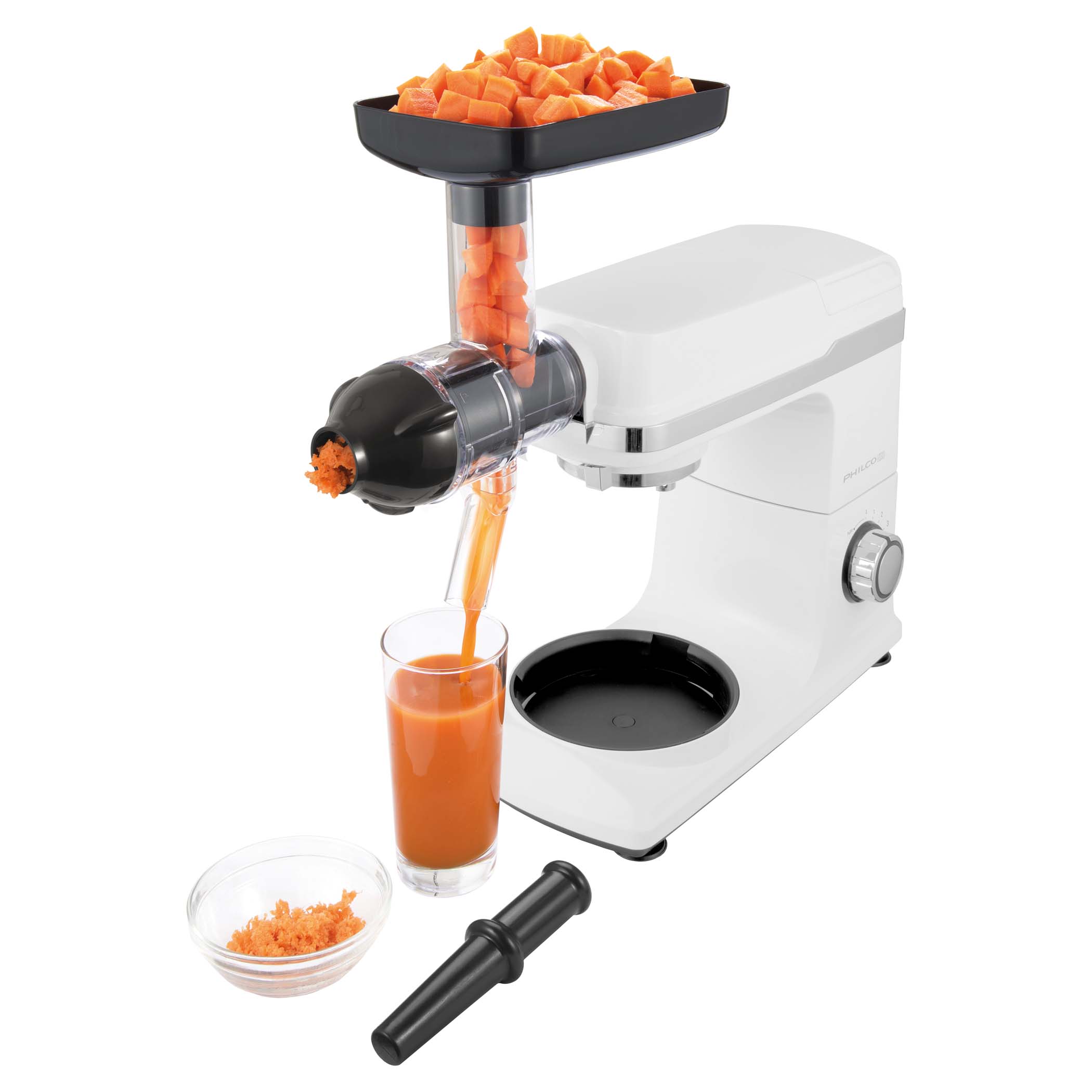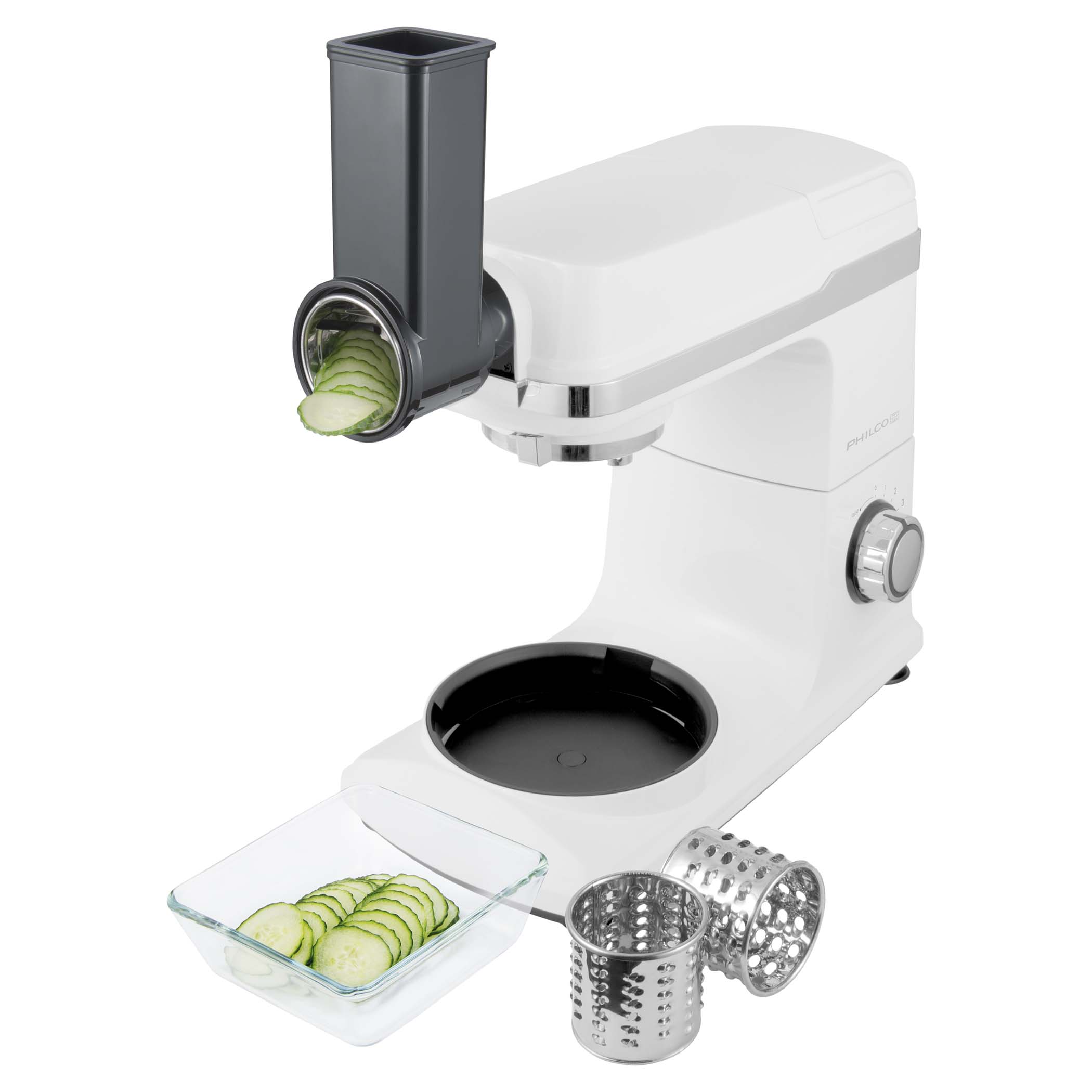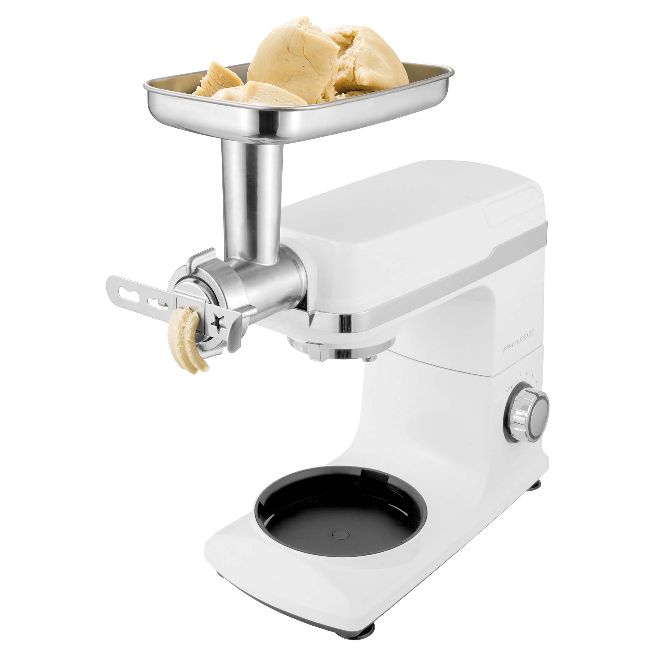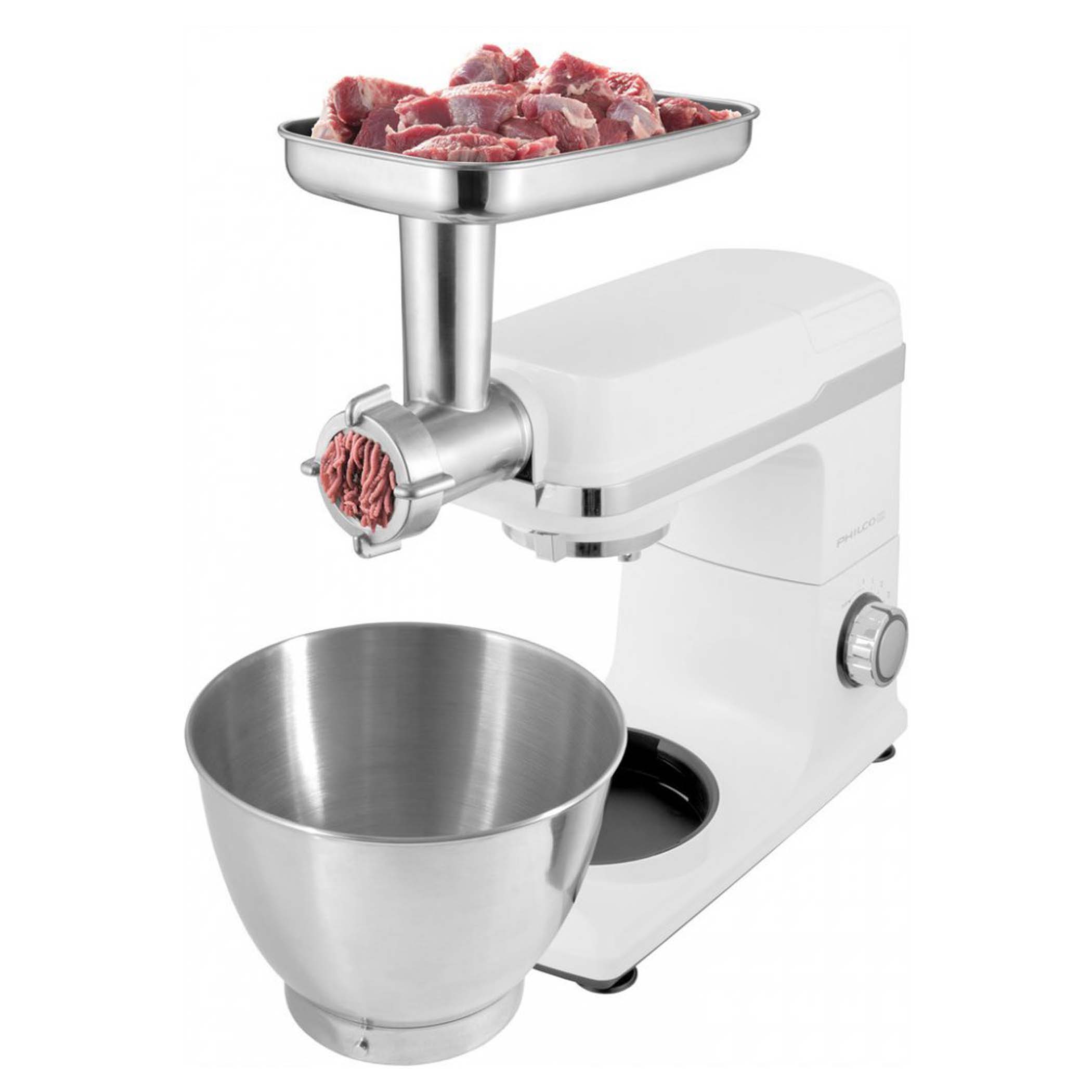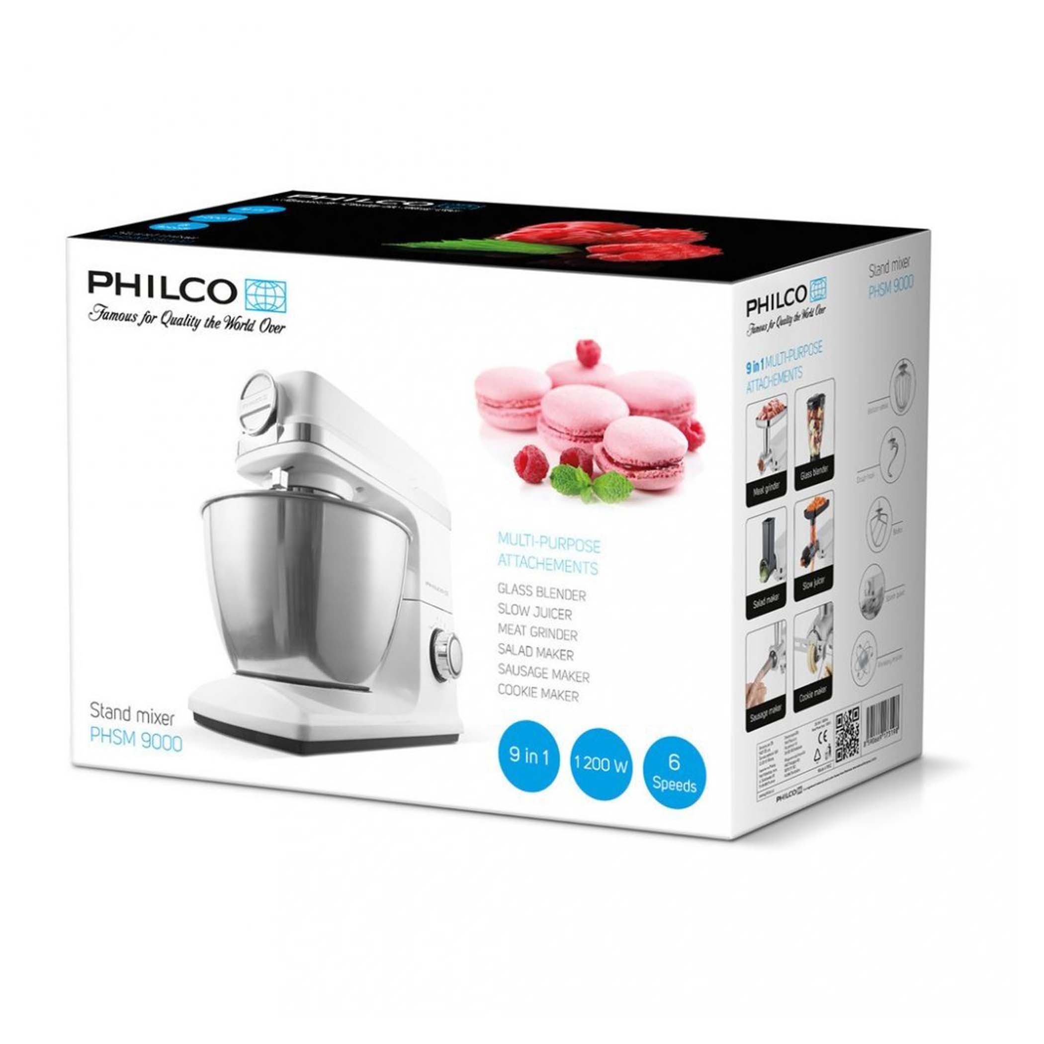 Niezwykle wydajny i wszechstronny robot kuchenny PHSM 9000 zastąpi cały arsenał urządzeń kuchennych. Robot ubija, ugniata, miksuje, mieli mięso, trze, wyciska soki, formuje ciasteczka, nadziewa kiełbaski i wiele więcej.