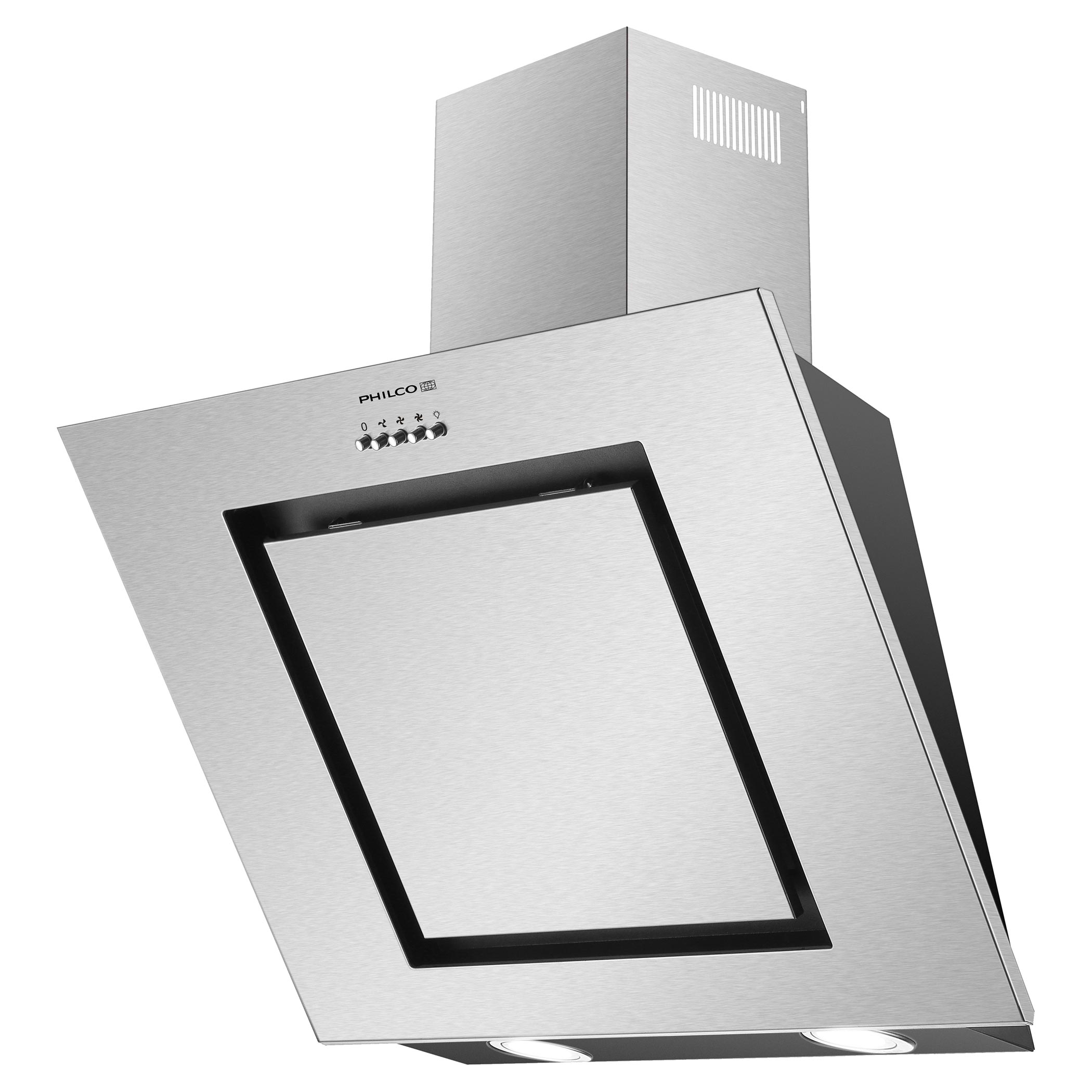 Wyciąg kominowy Philco PEW 305 X, wersja ze stali nierdzewnej z sterowaniem przyciskami i oświetleniem LED, klasa efektywności energetycznej C.